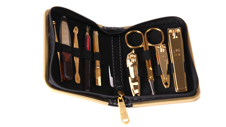 型號:產品規格:109mm*80mm 包裝規格:120mm*90mm*30mm 材質:PU皮+420不銹鋼+碳鋼+鋅合金 配件:RM603指甲鉗、RM602指甲鉗、美容剪、斜口指甲鉗、指甲銼、耳挖、刮刀、死皮刀、眉夾