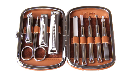 包裝規格:134mm*96mm*31mm 產品規格:128mm*89mm 單套重量:304g 材質:PU+420不銹鋼+鋅合金+碳鋼 配件:RM6431指甲鉗、RM6432指甲鉗、美容剪、斜口指甲鉗、指甲銼、死皮刀、眉